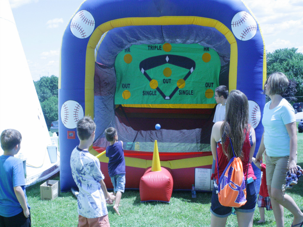 Where are the little baseball players? The inflatable baseball game is ready to begin. Come and join the game to see who will be the best scorer of the day